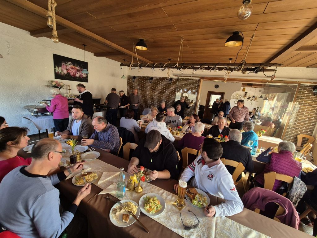 Nach der ausgedehnten Tour kehrten die Wanderer in geselliger Runde bei Vereinswirt Siva ein, der mit einem reichhaltigen Buffet für das leibliche Wohl sorgte. Beim gemütlichen Beisammensein ließen die Teilnehmer den erlebnisreichen Tag entspannt ausklingen.