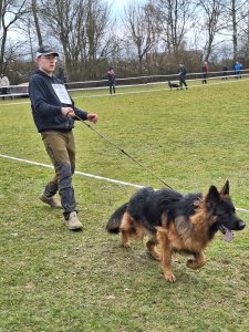 Die jährliche Zuchtschau der SV OG Albershausen brachte am dritten Märzwochenende einige herausragende Leistungen. Roland Benz, einer unserer erfahrenen Züchter, stellte gleich drei Hunde aus seiner Zuchtstätte vor. Besonders im Fokus stand der 10-monatige Nachwuchs aus seiner Zuchtlinie: Dolly und Dai Dai vom Rolben, beide Nachkommen des renommierten Rüden Jim vom Messina.